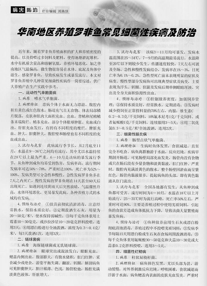 華南地區(qū)養(yǎng)殖羅非魚常見細(xì)菌性疾病及防治1