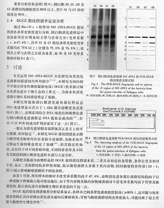 圓白鯧消化道菌群PCR-DGGE基因指紋圖譜構(gòu)建2