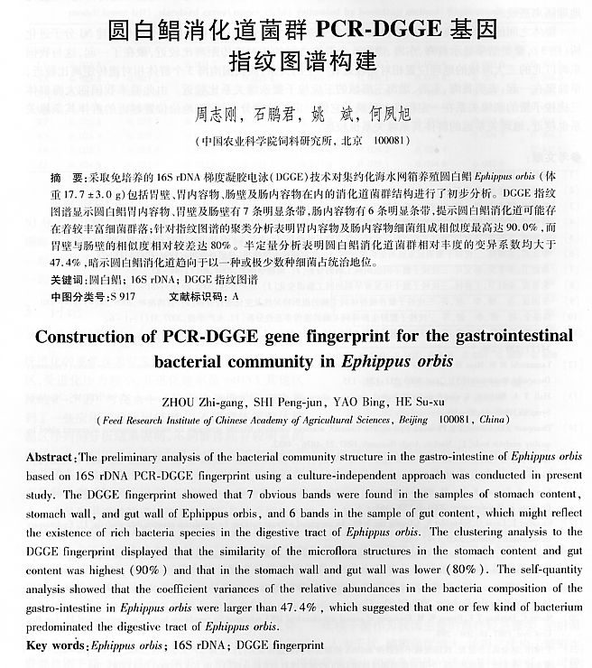 圓白鯧消化道菌群PCR-DGGE基因指紋圖譜構建1