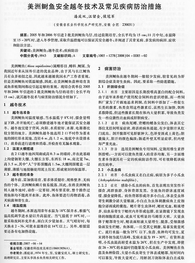 美洲鰣魚安全越冬技術(shù)及常見疾病防治措施1