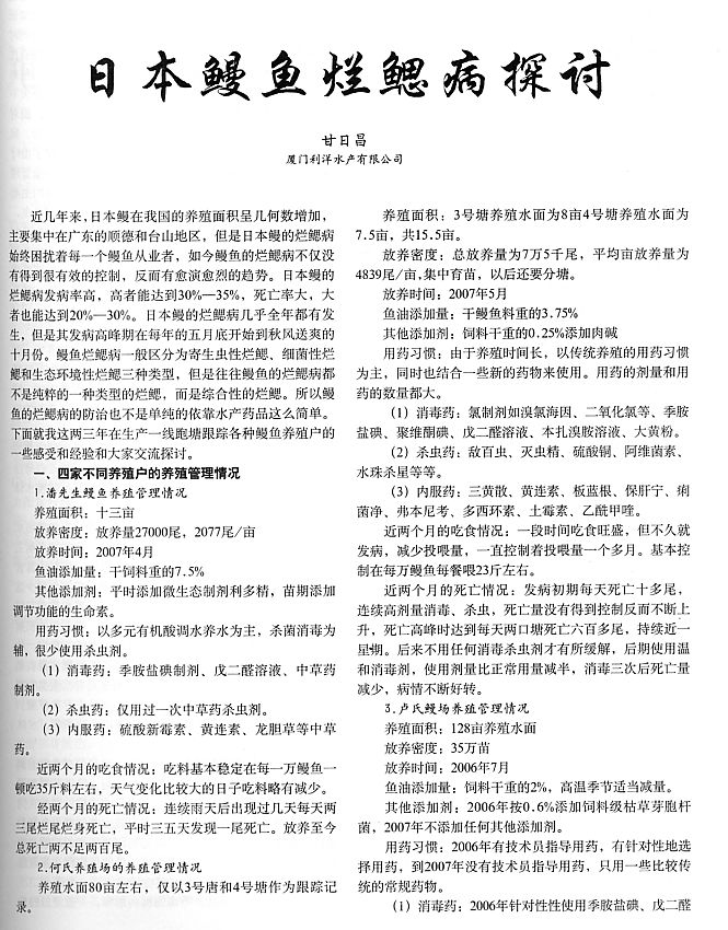 日本鰻魚爛鰓病探討1