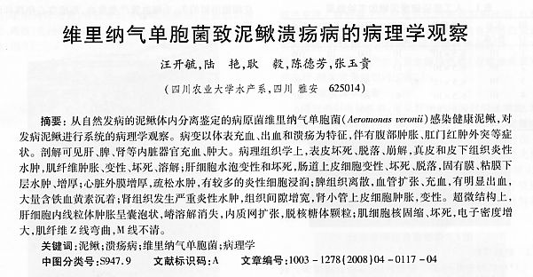 維里納氣單胞菌致泥鰍潰瘍病的病理觀察