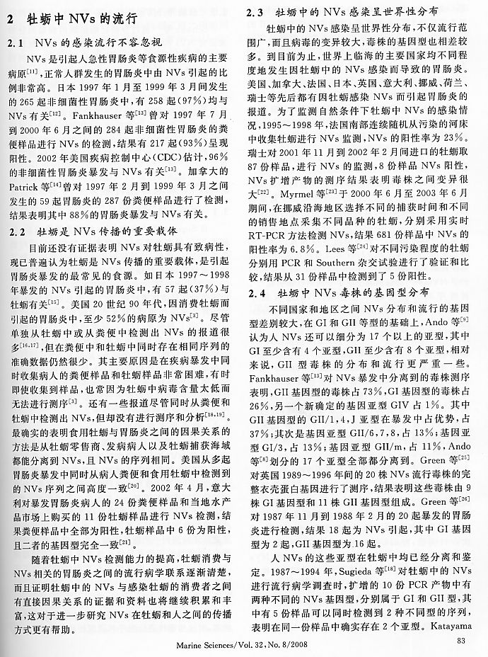 牡蠣中諾如病毒的分子流行病學(xué)研究進(jìn)展2