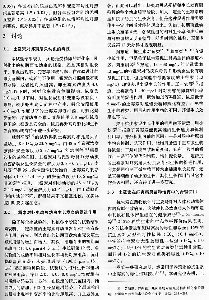 土霉素對蝦夷扇貝幼蟲生長發(fā)育的影響2