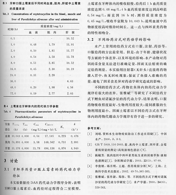 土霉素在牙鲆體內(nèi)的藥代動力學(xué)研究2