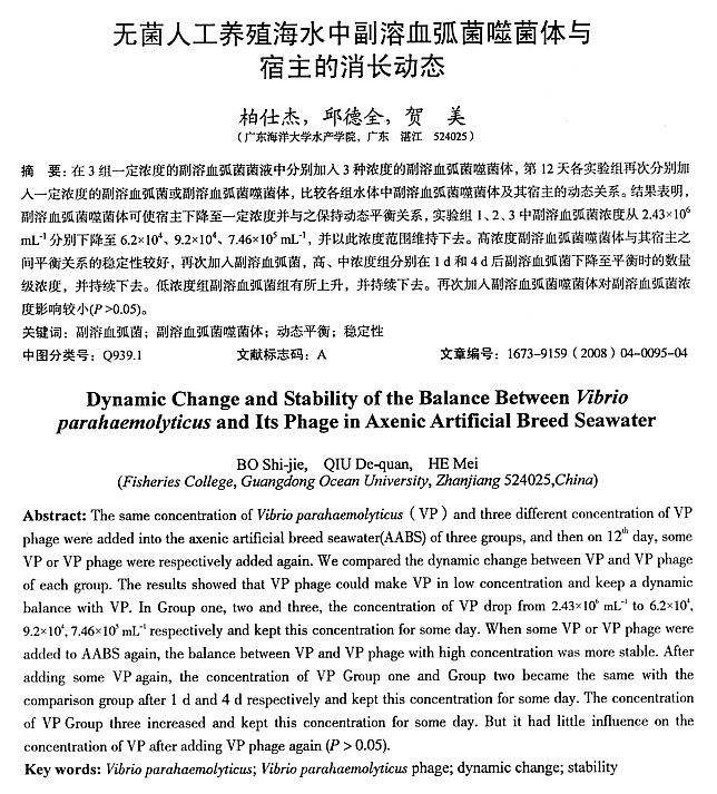 無(wú)菌人工養(yǎng)殖海水中副溶血弧菌噬菌體與宿主的消才動(dòng)態(tài)