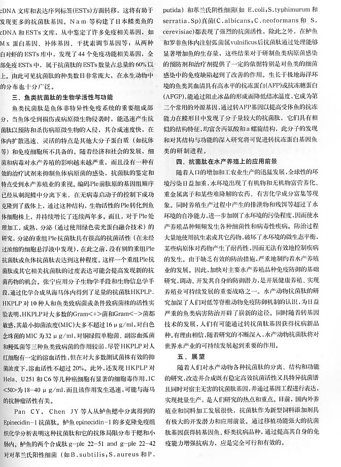 魚(yú)類(lèi)抗菌肽的研究進(jìn)展3