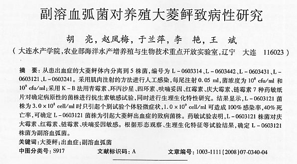 副溶血弧菌對養(yǎng)殖大菱鲆致病性的研究1