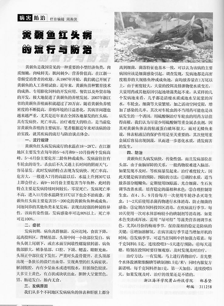 黃顙魚紅頭病的流行與防治