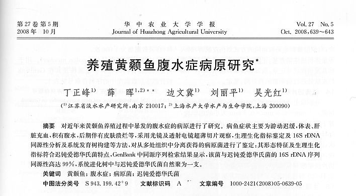 養(yǎng)殖黃顙魚腹水癥病原研究