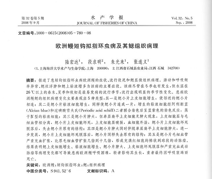 歐洲鰻短鉤擬指環(huán)蟲病及其鰓組織病理