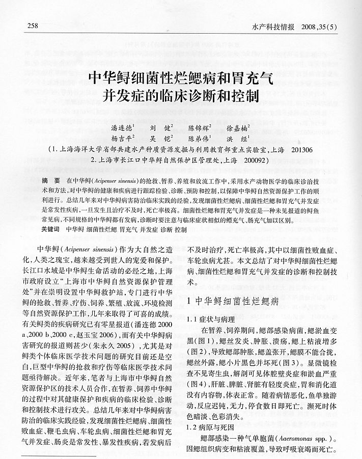 中華鱘細(xì)菌性爛鰓病和胃充氣并發(fā)癥的臨床診斷和控制1