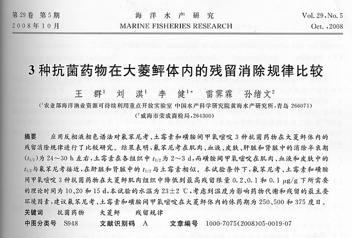 三種抗菌藥物在大菱鲆體內(nèi)的殘留消除規(guī)律比較