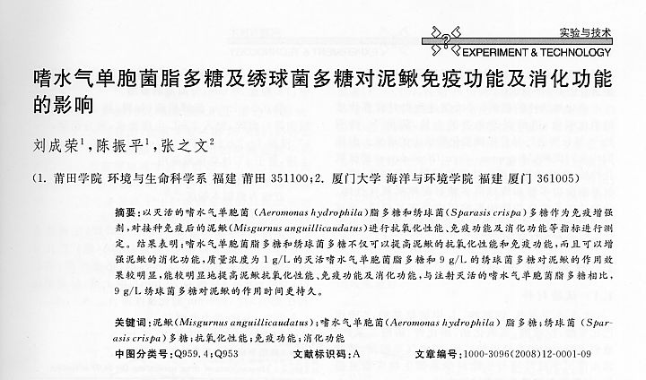 嗜水氣單胞菌脂多糖及繡球菌多糖對(duì)泥鰍免疫功能及消化功能的影響