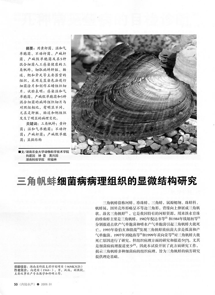 三角帆蚌細(xì)菌病病理組織的顯微結(jié)構(gòu)研究1