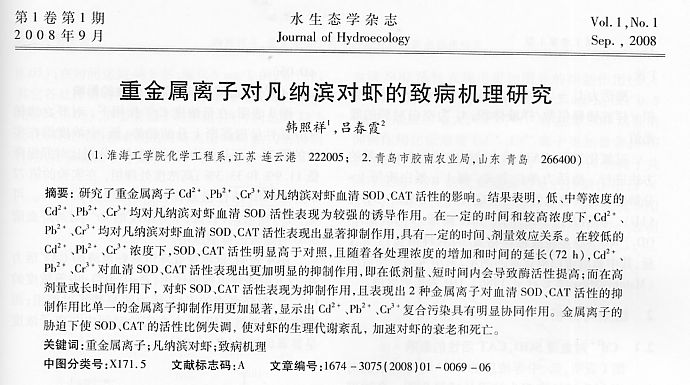 重金屬離子對(duì)凡納濱對(duì)蝦的致病機(jī)理研究