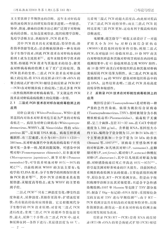 PCR 技術(shù)在對(duì)蝦病毒病檢測(cè)上的應(yīng)用及研究進(jìn)展 2