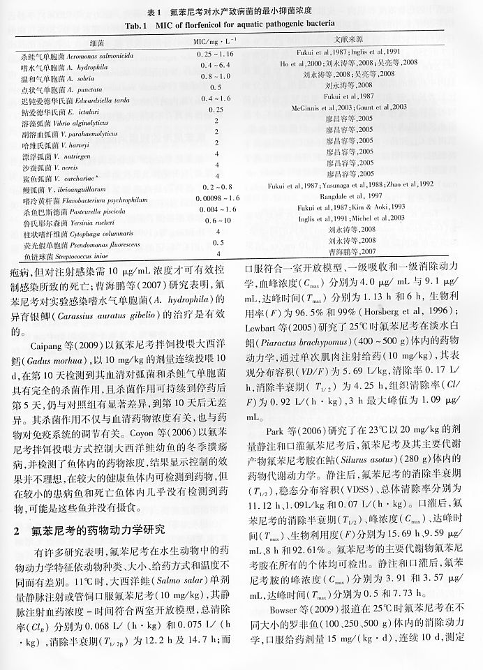 氟苯尼考的藥效學(xué)及其在水產(chǎn)動物中的代謝動力學(xué)研究進(jìn)展2