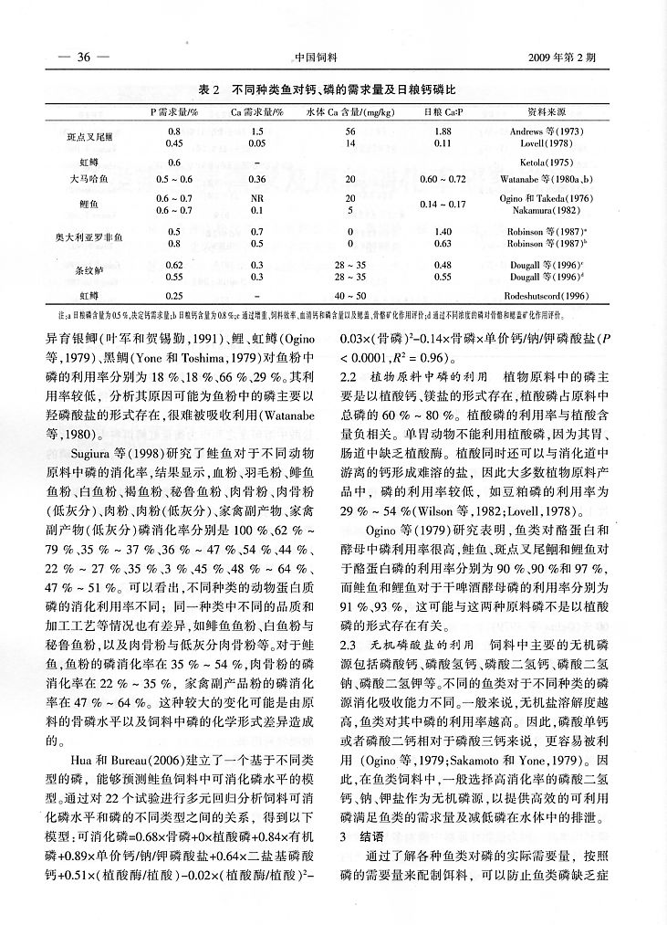 魚類磷營養(yǎng)需求及原料消化率研究進展3