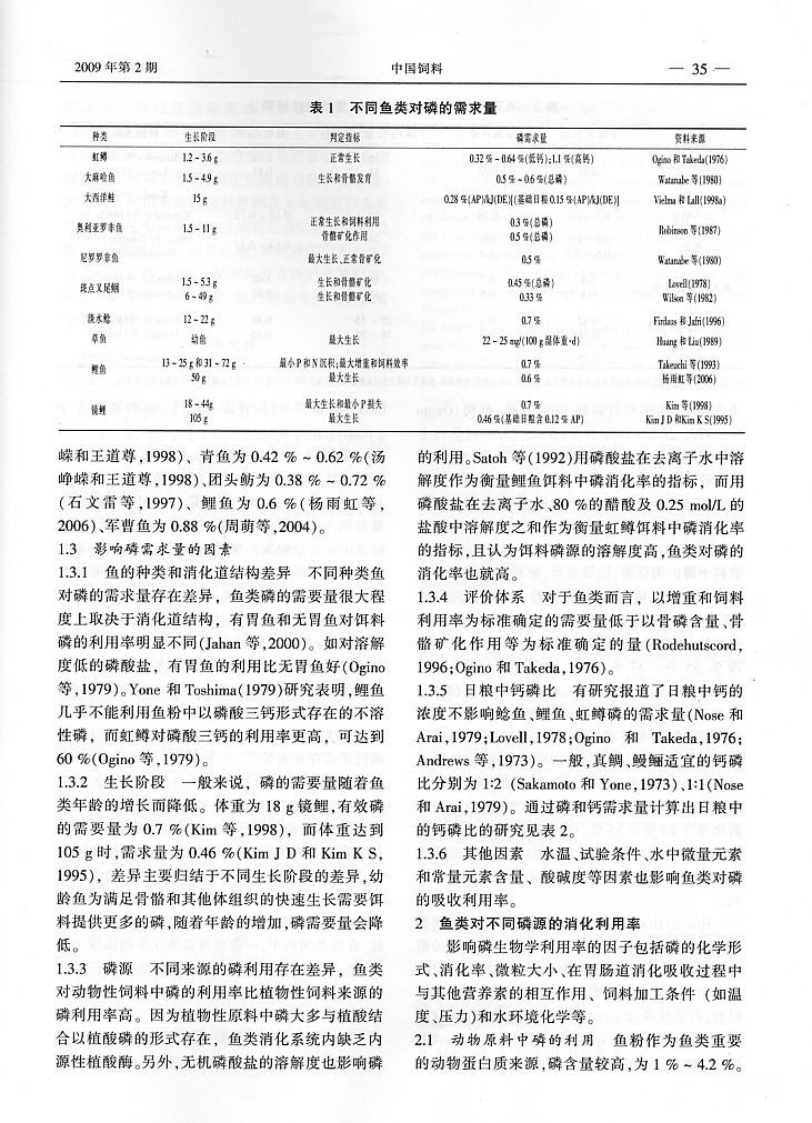 魚(yú)類磷營(yíng)養(yǎng)需求及原料消化率研究進(jìn)展2