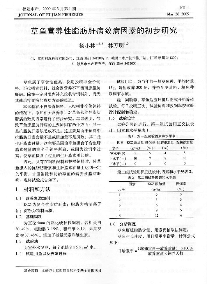 草魚營養(yǎng)性脂肪肝病致病因素的初步研究1