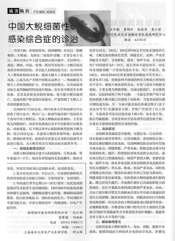 中國(guó)大鯢細(xì)菌性感染綜合癥的診治1