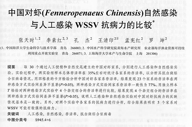 中國(guó)對(duì)蝦自然感染與人工感染W(wǎng)SSV抗病力的比較