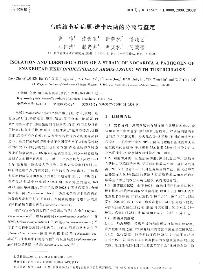烏鱧結(jié)節(jié)病-諾氏卡菌的分離與鑒定1