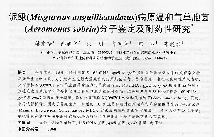 泥鰍病原溫和氣單胞菌分子鑒定及耐藥性研究