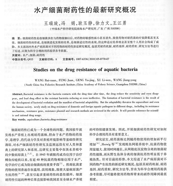 水產(chǎn)細菌耐藥性的最新研究概況1