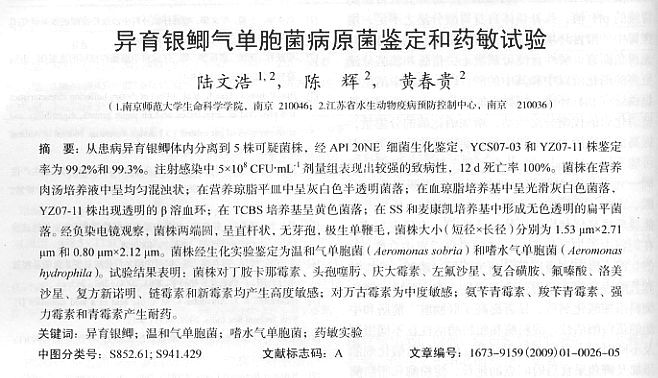 異育銀鯽氣單胞菌病原菌鑒定和藥敏實驗