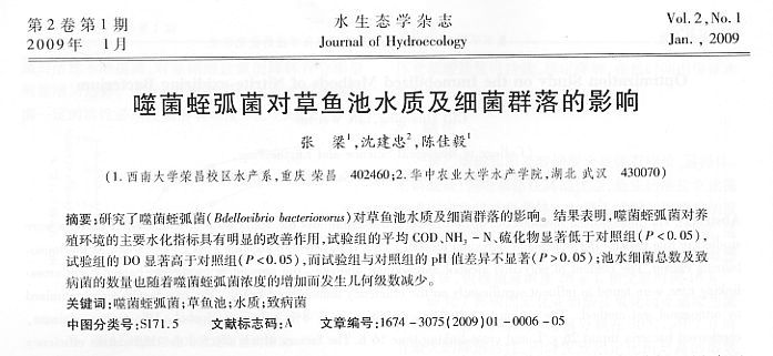噬菌蛭弧菌對草魚池水質(zhì)及細菌群落的影響