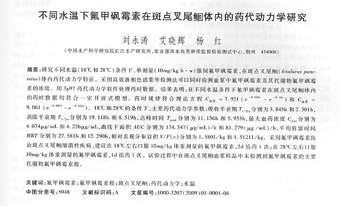 不同水溫下氟甲砜霉素在斑點叉尾鮰體內(nèi)的藥代動力學(xué)研究