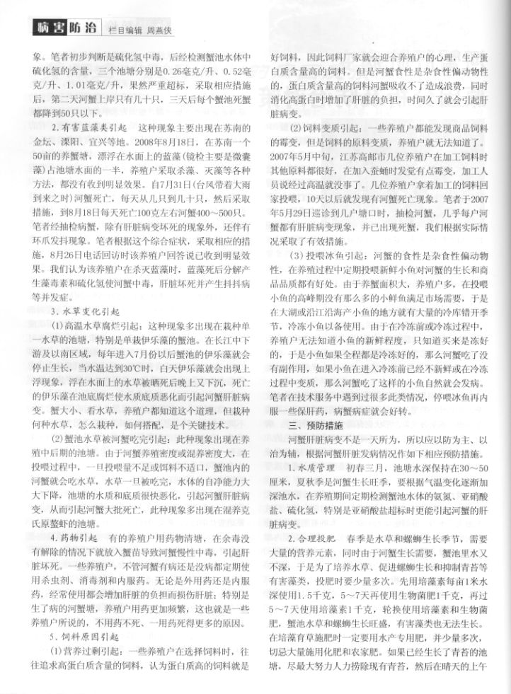 河蟹肝臟病變?cè)蚍治黾胺乐螌?duì)策 2