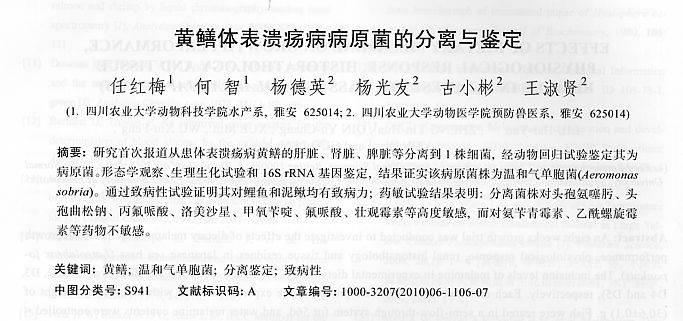 黃鱔體表潰瘍病病原菌的分離與鑒定