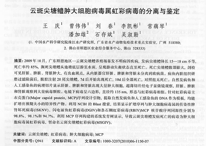 云斑尖塘鱧腫大細胞病毒屬虹彩病毒的分離與鑒定