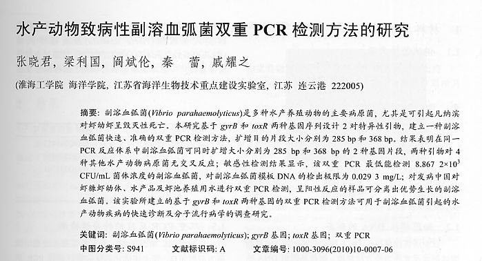 水產(chǎn)動物致病性副溶血弧菌雙重PCR檢測方法的研究