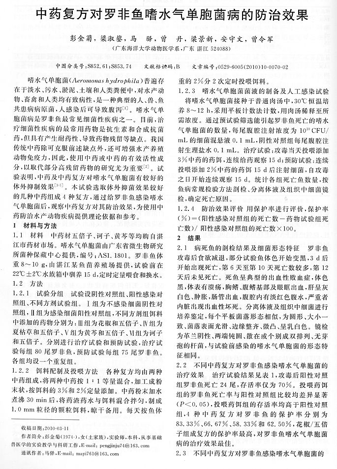 中藥復(fù)方對羅非魚嗜水氣單胞菌病的防治效果1