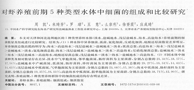 對(duì)蝦養(yǎng)殖前期5種類(lèi)型水體中細(xì)菌的組成和比較研究