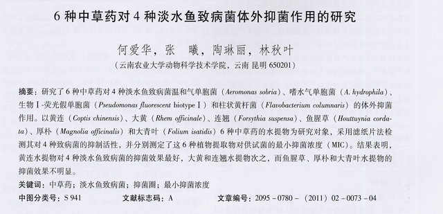 6種中草藥對(duì)4種淡水魚(yú)致病菌體外抑菌作用的研究