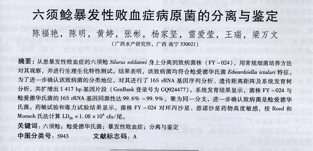 六須鯰暴發(fā)性敗血癥病原菌的分離與鑒定