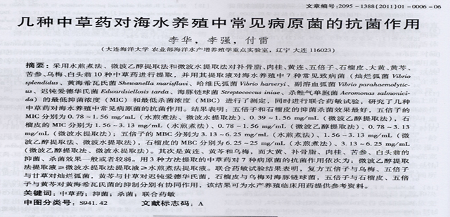 幾種中草藥對海水養(yǎng)殖中常見病原菌的抗菌作用