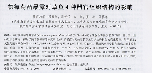 氯氰菊酯暴露對草魚4種器官組織的影響