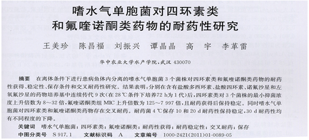 嗜水氣單細(xì)胞對四環(huán)素類和氟喹諾酮類藥物的耐藥性研究