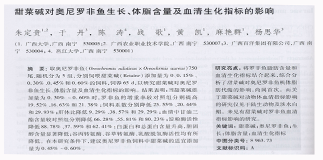 甜菜堿對(duì)奧尼羅非魚生長(zhǎng)、體脂含量及血清生化指標(biāo)的影響