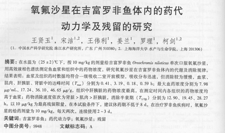 氧氟沙星在吉富羅非魚體內(nèi)的藥代動力學(xué)及殘留的研究