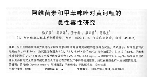 阿維菌素和甲苯咪唑對黃河鯉的急性毒性研究
