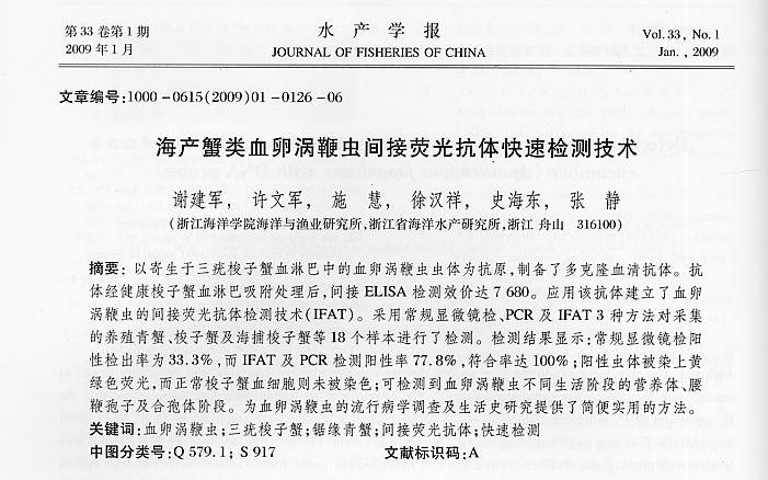 海產(chǎn)蟹類血卵渦鞭蟲間接熒光抗體快速檢測技術(shù)