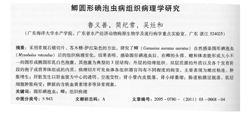 鯽圓形碘泡蟲(chóng)病組織病理學(xué)研究