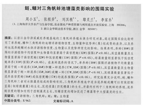 鰱、鳙對三角帆蚌池塘藻類影響的圍隔實驗